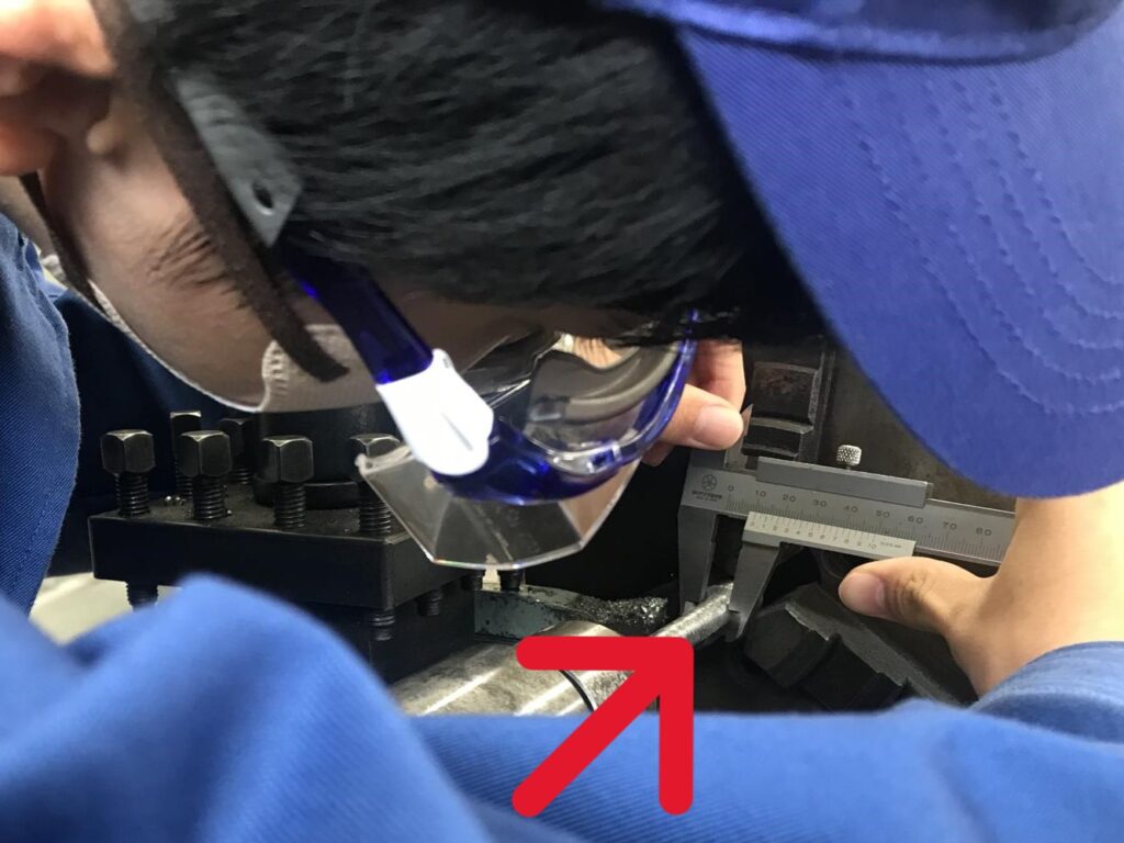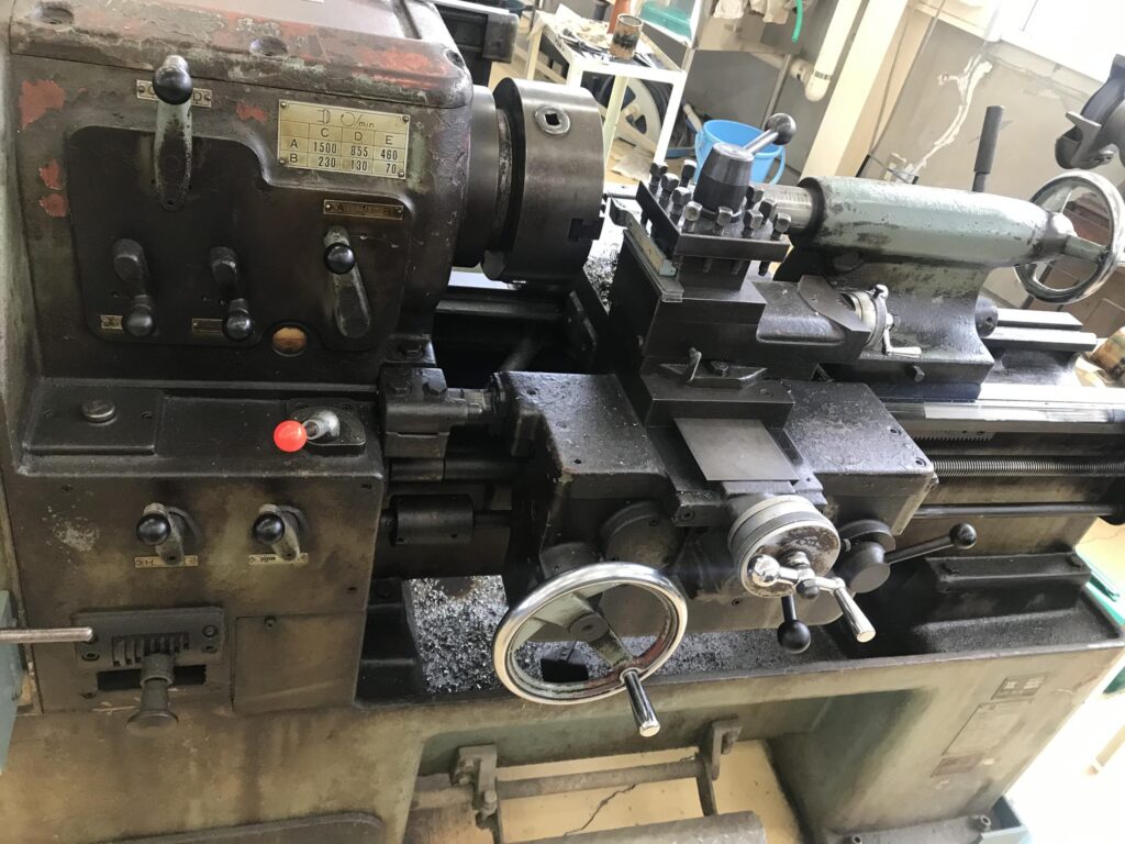 「旋盤」です~!生徒たちはこれを使って、金属加工をしています。