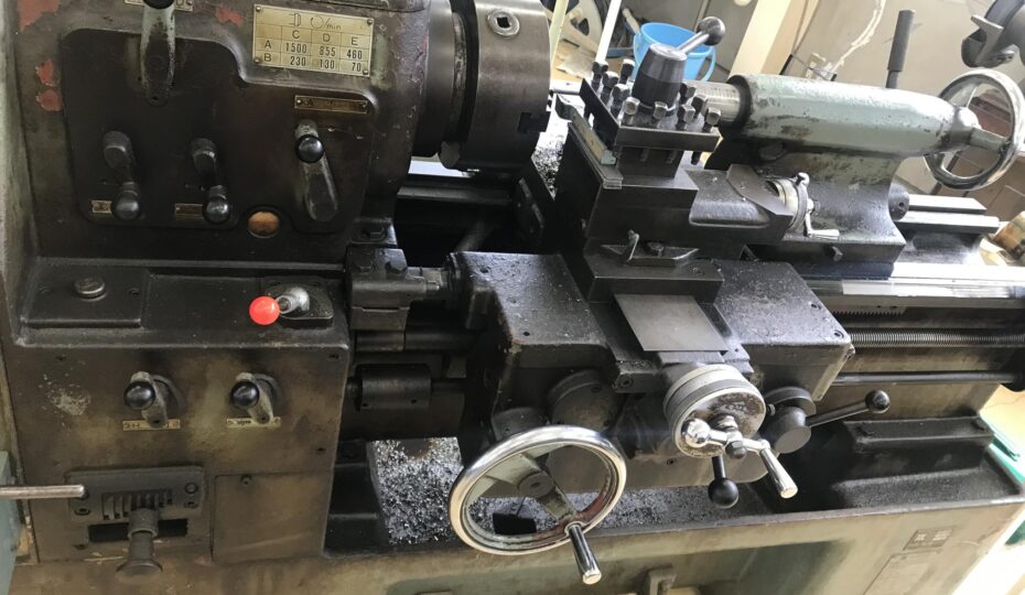 「旋盤」です~!生徒たちはこれを使って、金属加工をしています。