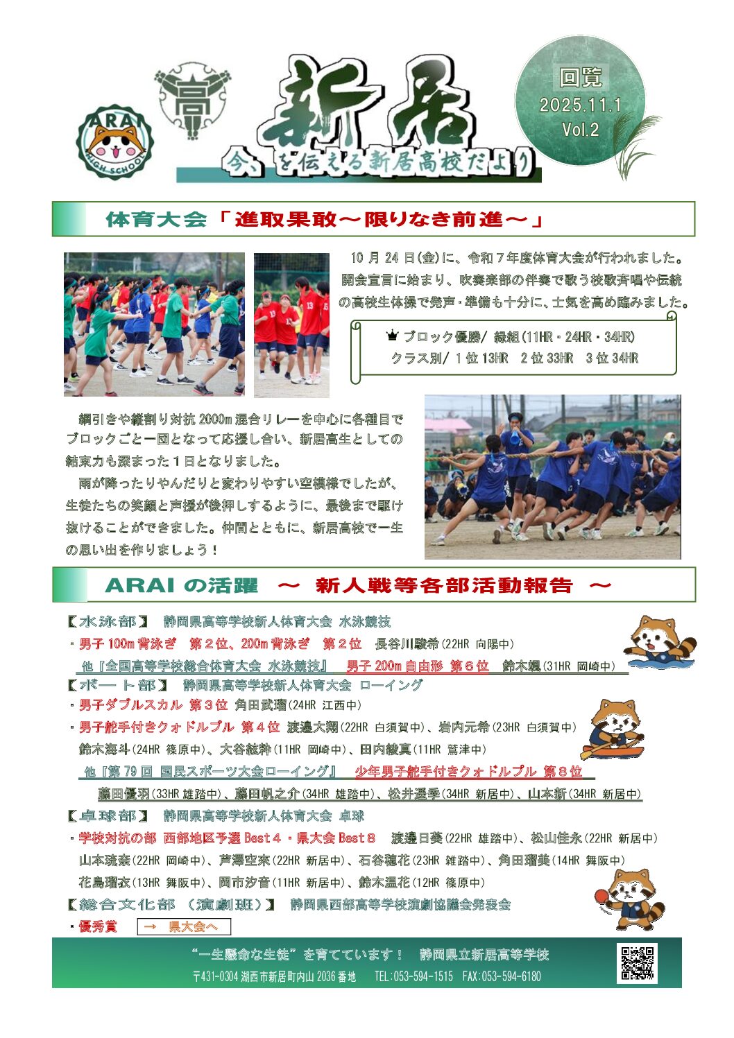 新居高校へ入学を御検討の方へ。 学校案内ページを御覧ください。