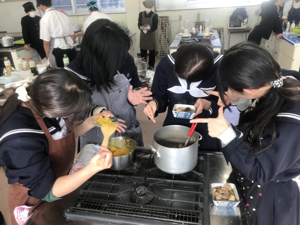 ある班は、筑前煮を煮ている途中で「大変だ!水分がなくなってきている!」と水を足してしまったり、様々なハプニングもありましたが、そんな出来事も、かくし味として美味しくいただきました♪
