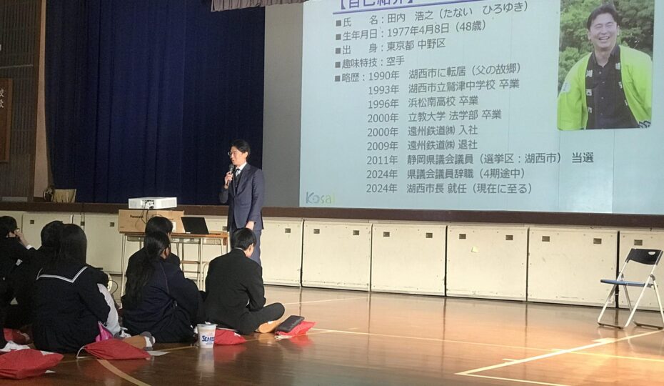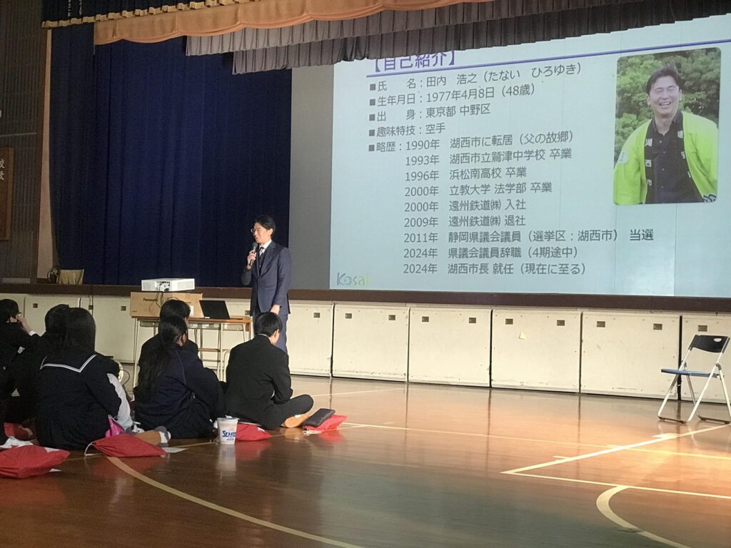 田内市長から、直々に湖西市についてお話を聞いた上で、様々な質問が出来る貴重な機会となりました!