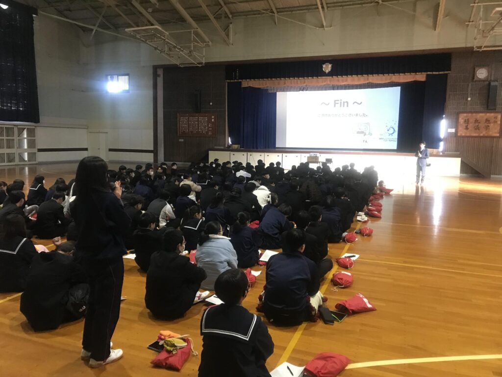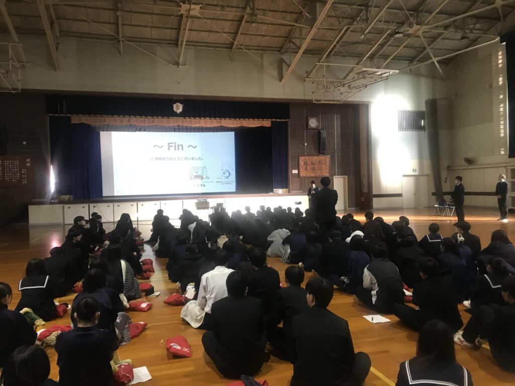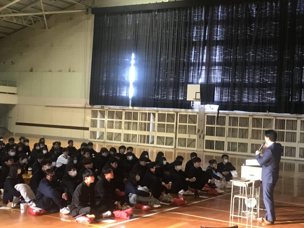 生徒たちは、市長が来るなんて…!と緊張していましたが、田内市長の自己紹介にて、奥様との馴れ初めなどもお話ししていただき、一気に親しみ度アップ!